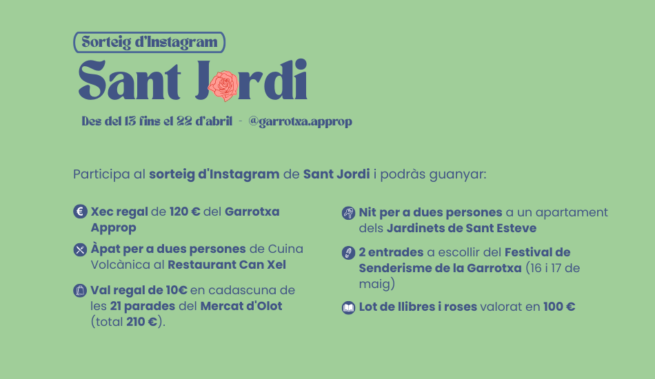 - Seguir els 5 perfils d’Instagram de les entitats organitzadores ( @garrotxa.approp – @garrotxahostalatge – @comerciantsolot – @mercatolot – @oh_garrotxa )
